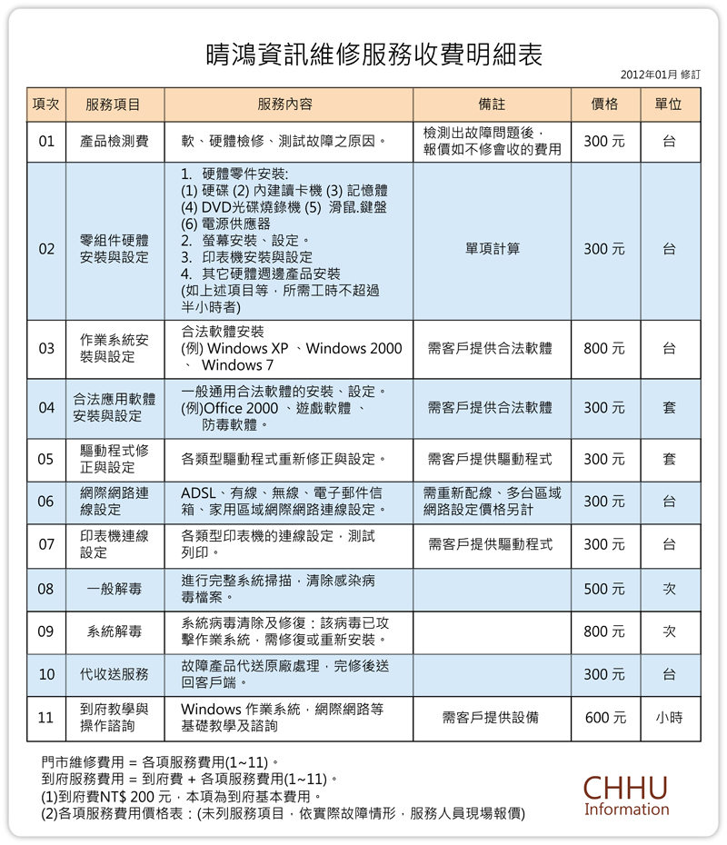 本公司提供專業到府宅修,無論是下雨天、國定假日都讓您免於修電腦時求助無門的煩惱,只要您一通電話,專業工程師到府上替您解決任何疑難雜症。